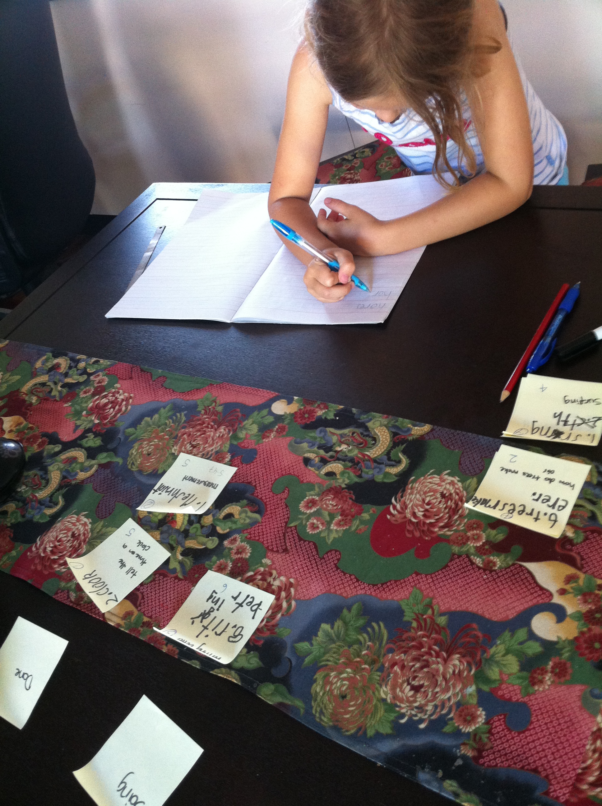 - Because I wanted her to work on her writing I asked her to write them up one per post it note. I also added one card to cover what I do for a living, but the exercise itself covers off some of this.