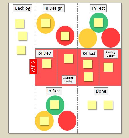 1. Hey Renee… thanks for sharing your approach. Much like Robert, I used a similar approach an put my WIP lanes at the bottom, so design and dev lanes sat next to each other… but using the circles like targets as a visual cue is a great idea.